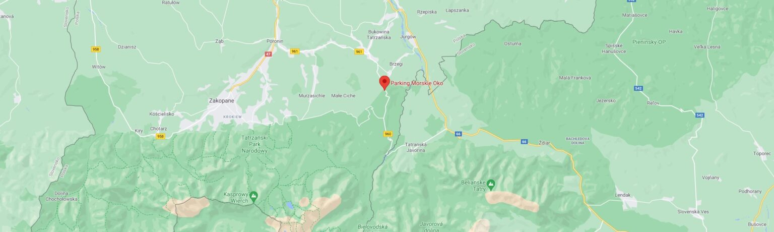 Rezerwacja dotyczy parkingu do Morskiego Oka przy ul. Głodówka 4. Oddalony 7 km od wejścia na szlak na Morskie Oko.